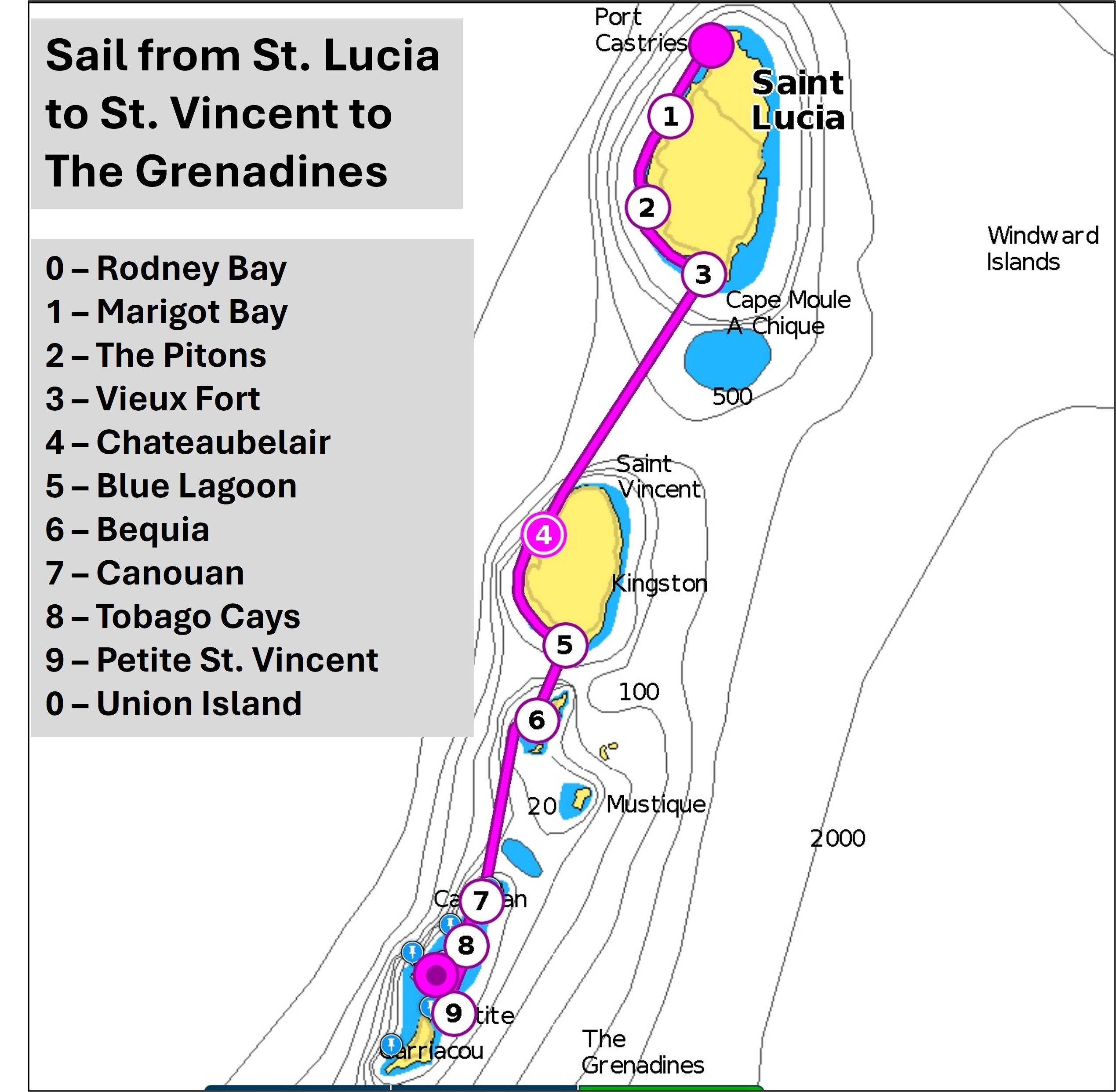 St.-Lucia-and-Grenadines-sail-Itinerary Published at 2539 × 2483 in Example of 10 day, one-way sail St. Lucia to St. Vincent to The Grenadines Itinerary